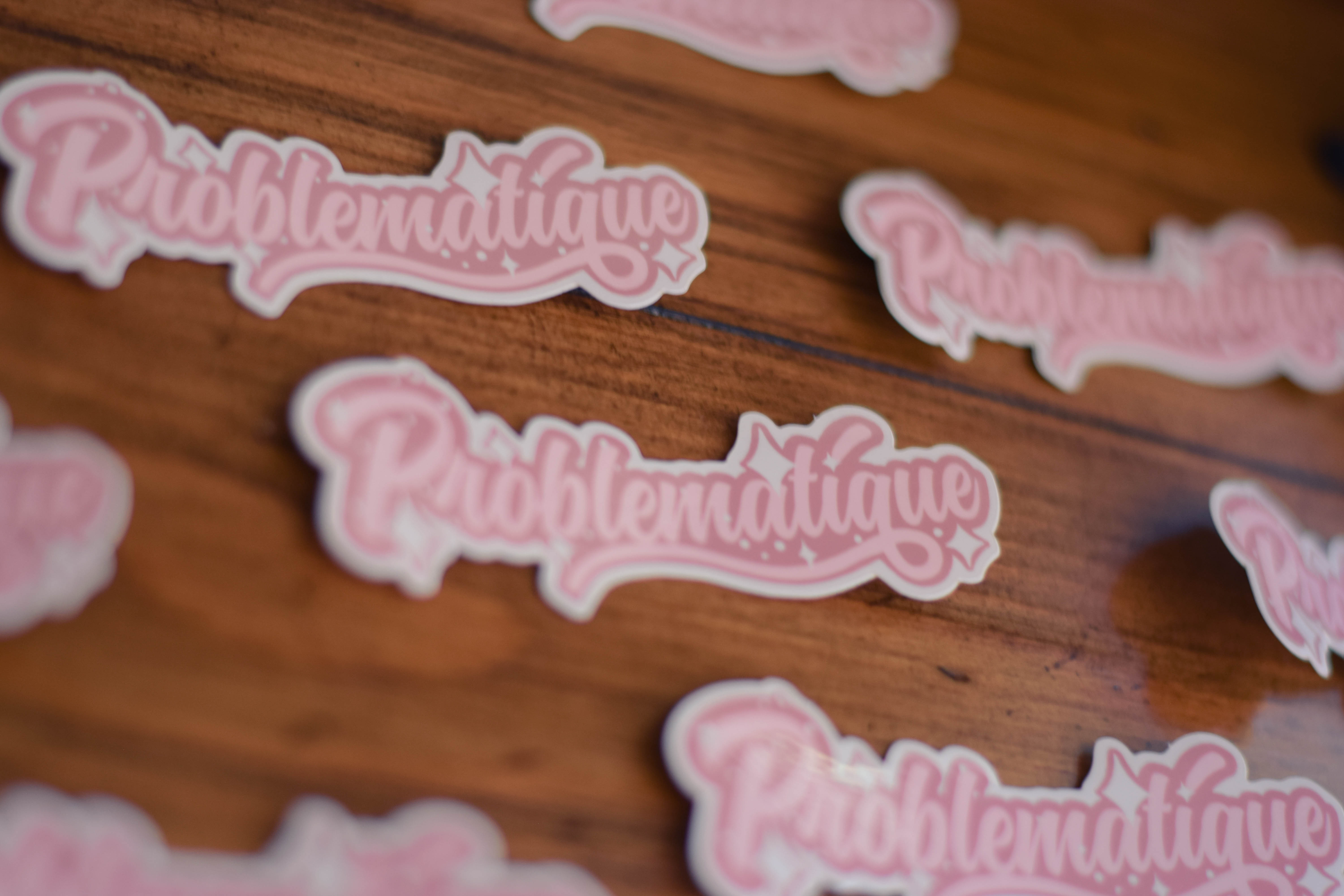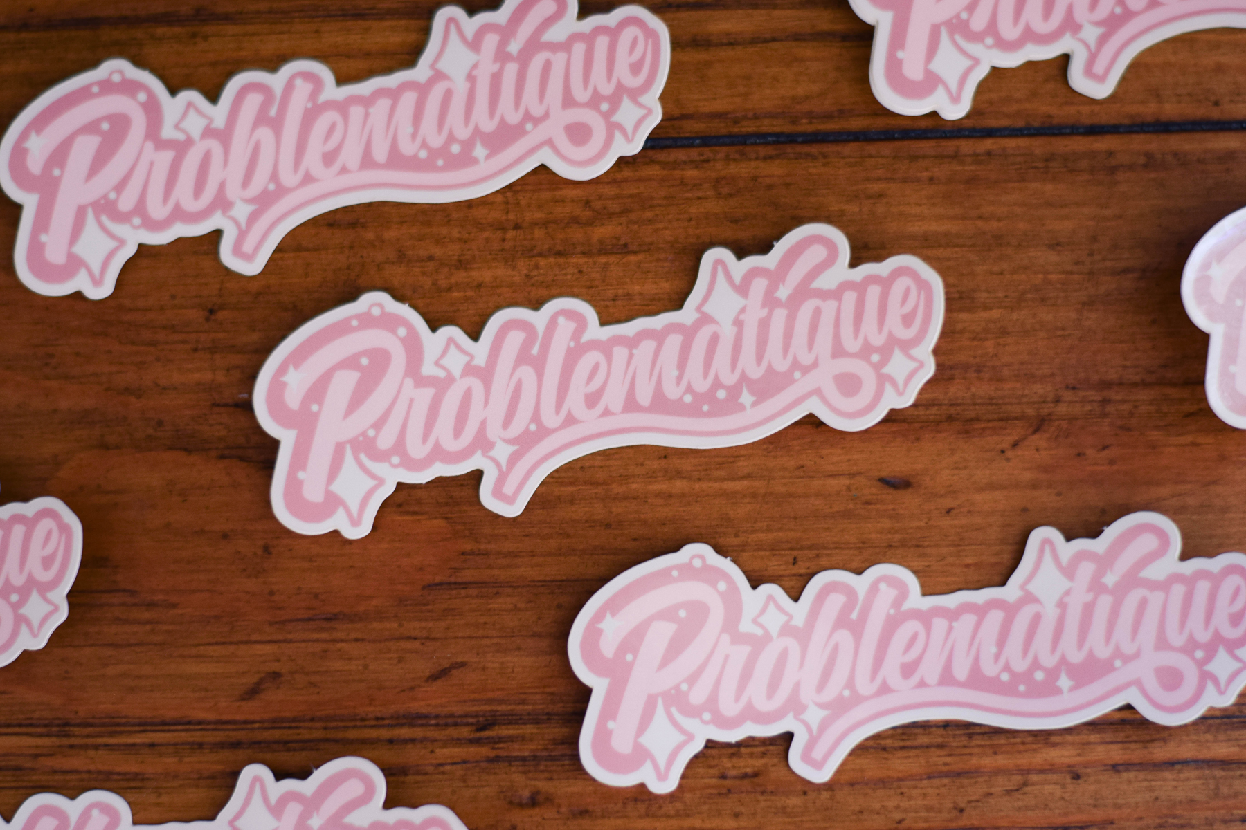 Problematic? Or problematique? Show off your troublesome side with this pink sticker, 4x1 inches.