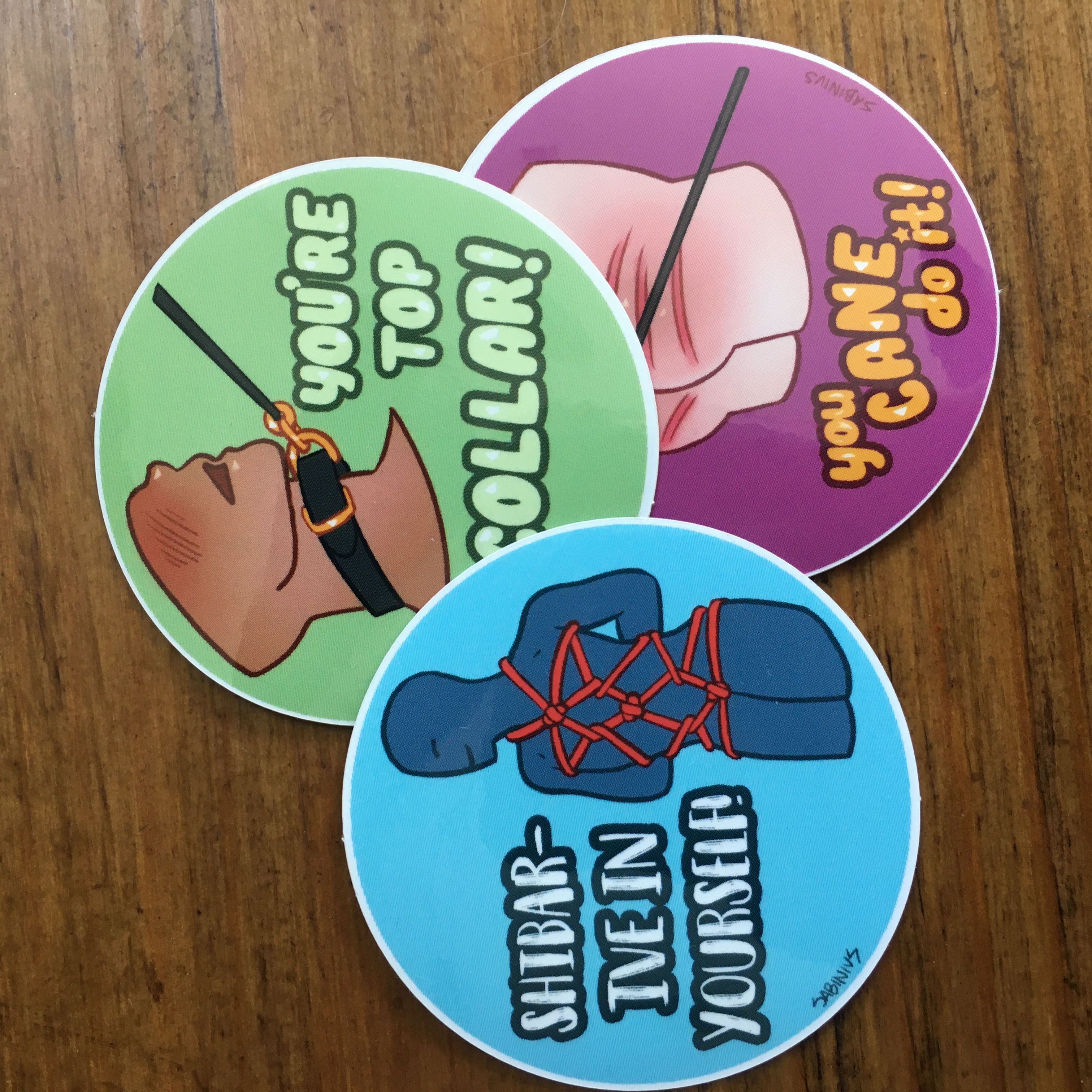 Three 2x2 inch modivational stickers to hand out to the kinksters in your life, or keep for yourself! The stickers include: